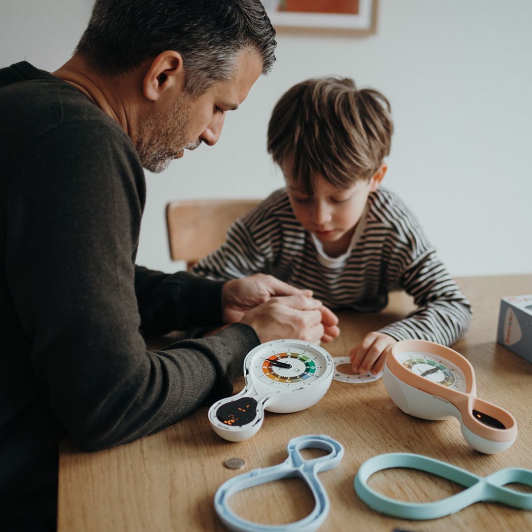 Met zijn drie verwisselbare wijzerplaten groeit KIDYALARM met je kind mee, van kleuren lezen tot digitale weergave. -
