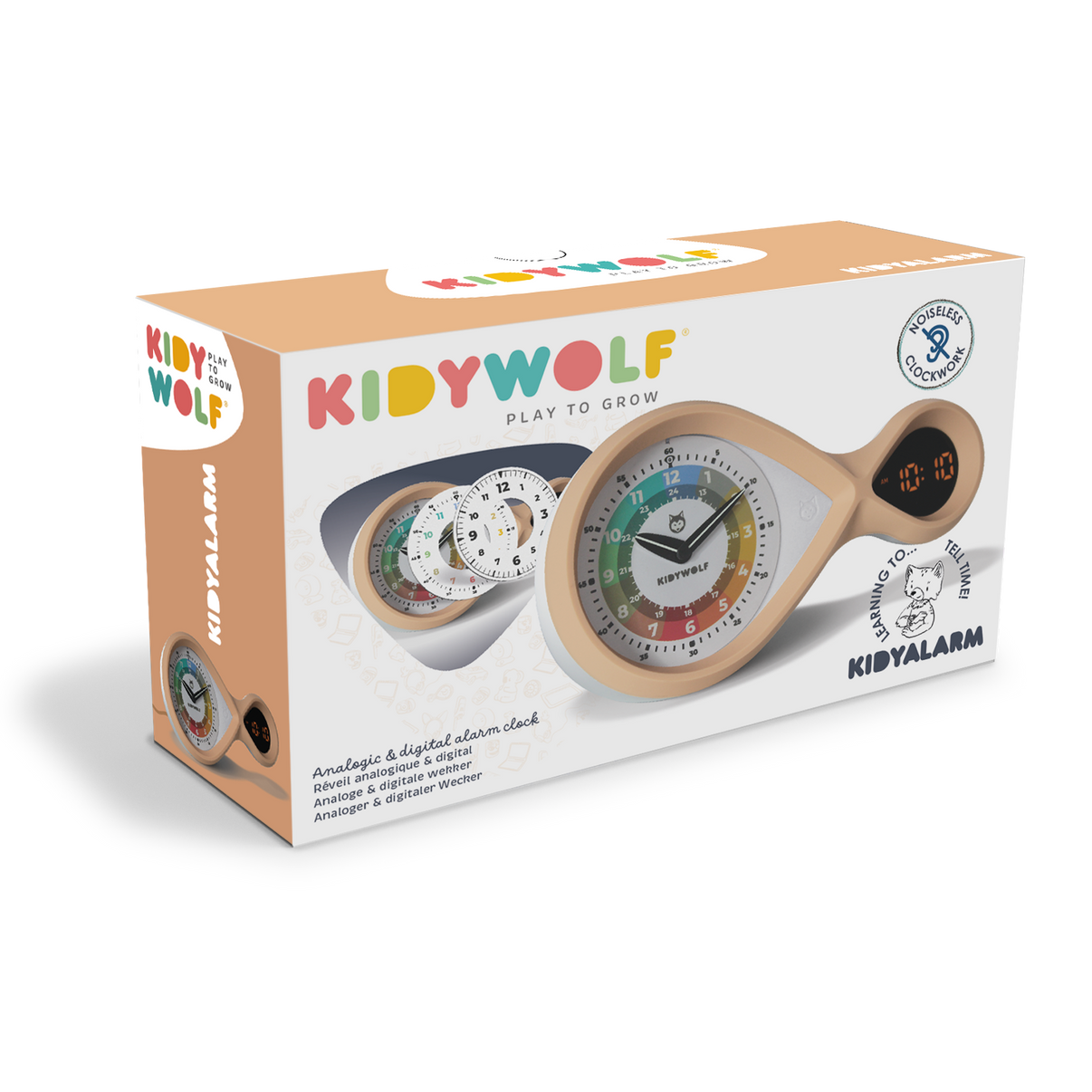 KIDYALARM helpt kinderen om de tijd te leren aflezen op een progressieve manier met wijzerplaten die zijn aangepast aan elke leeftijd. -