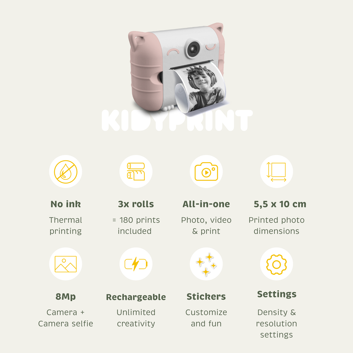 “We zijn erg blij met de KIDYPRINT. Mijn zoon vindt het geweldig om foto's te maken en ze meteen te kunnen afdrukken. Hij heeft er uren plezier van."