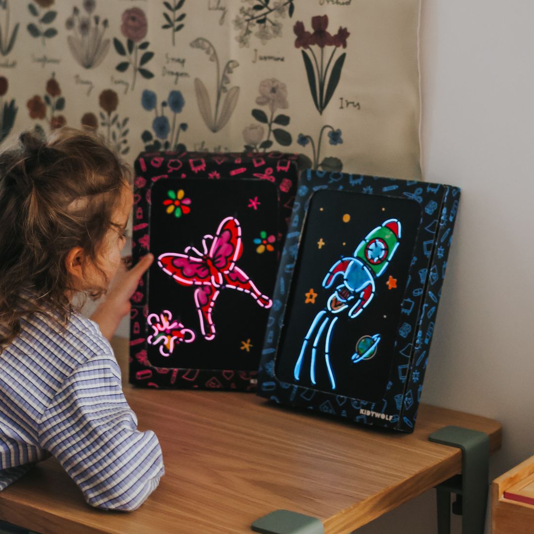 Les activités manuelles comme KIDYNEON stimulent la motricité fine, renforcent la coordination œil-main et favorisent la concentration. En réalisant leur propre tableau lumineux, les enfants développent aussi leur sens esthétique et leur confiance en eux. Une expérience complète qui allie créativité, précision et fierté du travail accompli.