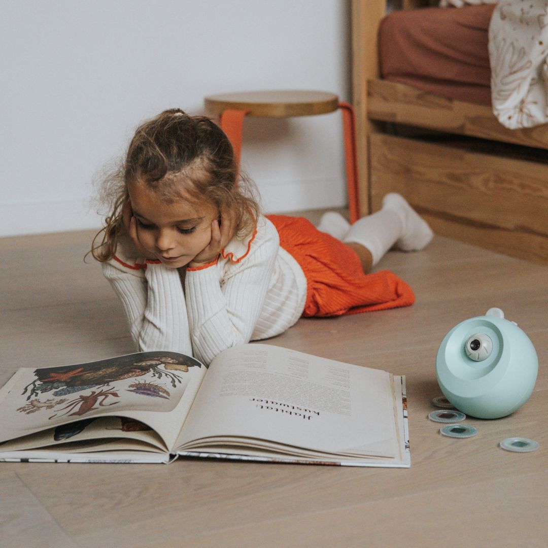 Faites du coucher un moment privilégié : installez KIDYSTAR sur une table de nuit, tamisez la lumière, insérez un disque… et laissez votre enfant choisir l’univers de son rêve du soir ! Lisez ensuite le livret ensemble pour prolonger la magie.