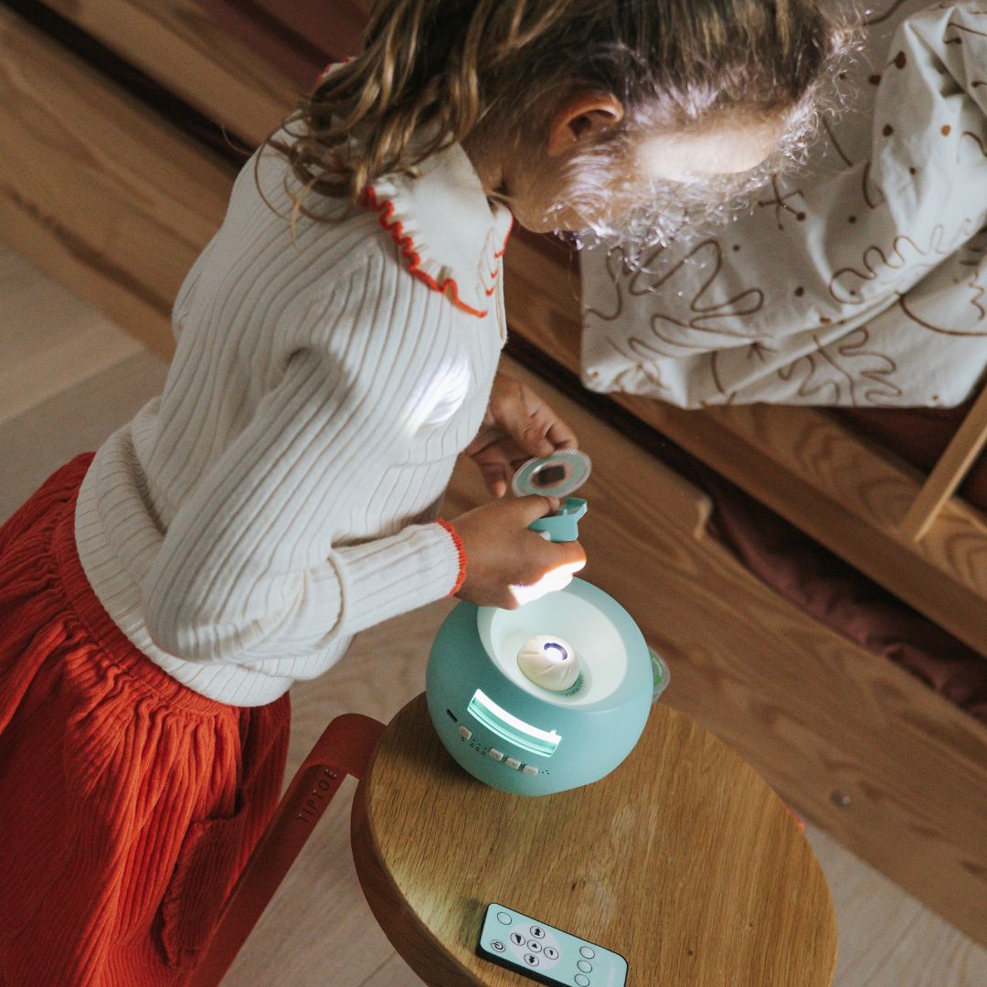 Une lumière douce et rotative qui favorise le calme, idéale pour accompagner le rituel de coucher.