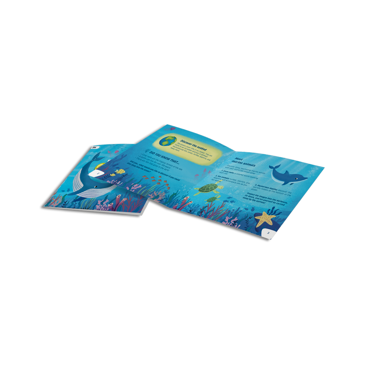 Accompagné d'un petit livret ludique, KIDYSTAR invite les enfants à découvrir l'univers et les fonds marins en s'amusant.